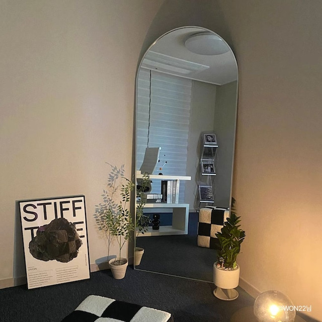 좁은 자취방도 전신 거울 하나로 훨씬 넓고 밝아 보일 수 있습니다. 거울이 빛을 반사해 방 전체를 환하게 만들어주기 때문이죠.